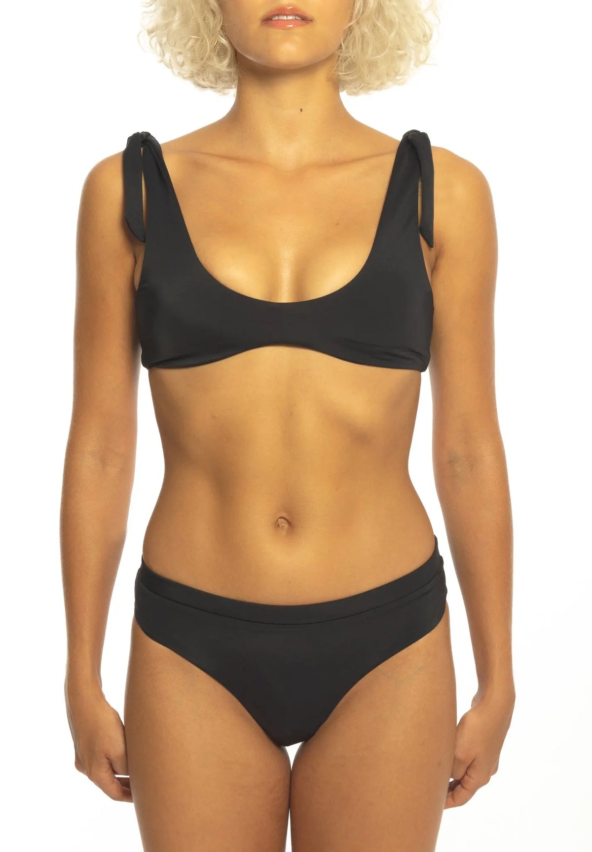 Le maillot de bain deux pièces Fara est fabriqué dans la plus douce des matières italiennes recyclées, du nylon créé à partir de plastiques et de filets de pêches.