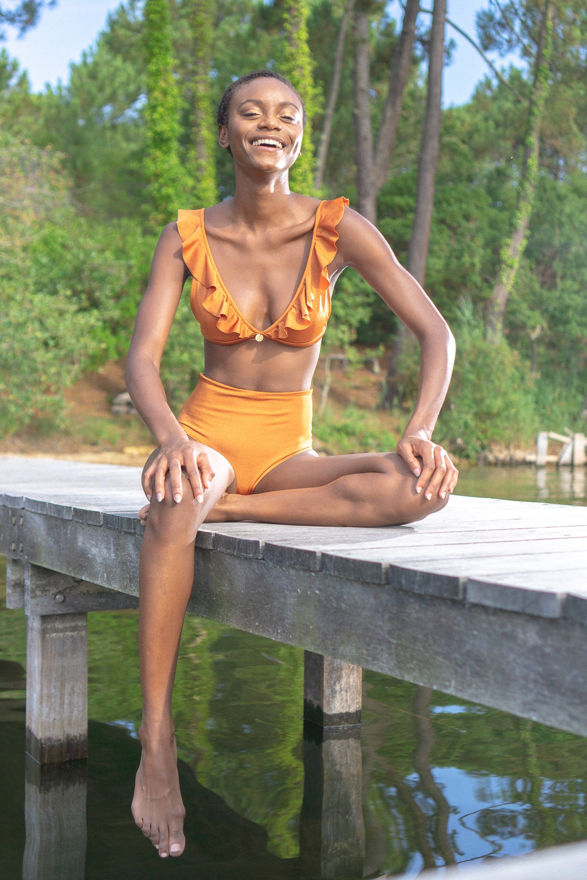 Top triangle laissant apparaître un jolie décolleté orné d’un volant.
