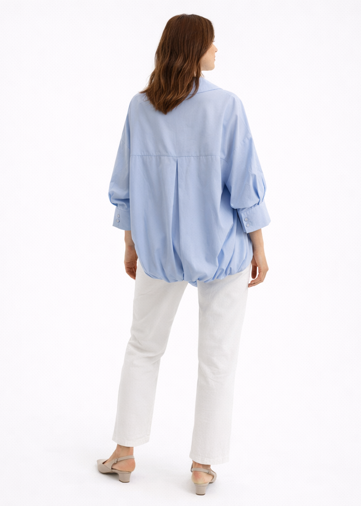 ✨ Chemisier oversize bleu effet noué – manches 3/4 volumineuses