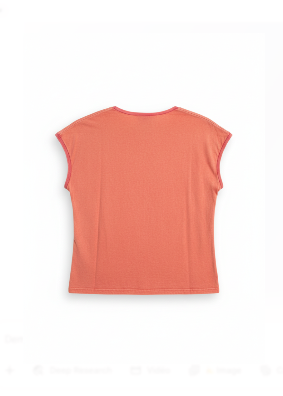 Un t-shirt corail lumineux, à la fois frais et élégant, rehaussé de petites broderies délicates qui apportent une touche artisanale et raffinée. Confectionné dans une matière douce et agréable, il allie confort et style. Sa couleur pétillante en fait une pièce idéale pour égayer vos tenues, qu’elles soient décontractées ou plus habillées.